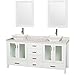 Wyndham Collection Lucy 72 inch Double Bathroom Vanity in White, White Carrera Marble Countertop, Pyra White Porcelain Sinks, and 24 inch Mirrors