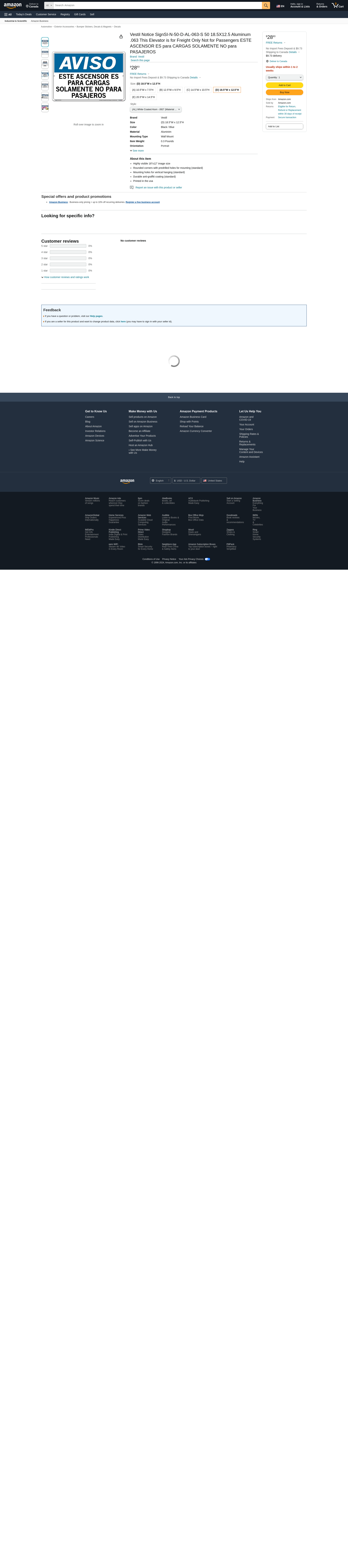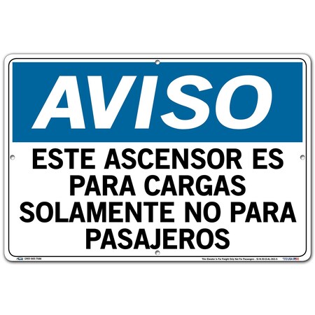 Vestil Notice SignSI-N-50-D-AL-063-S 50 18.5X12.5 Aluminum .063 This Elevator is for Freight Only Not for Passengers ESTE ASCENSOR ES para CARGAS SOLAMENTE NO para PASAJEROS