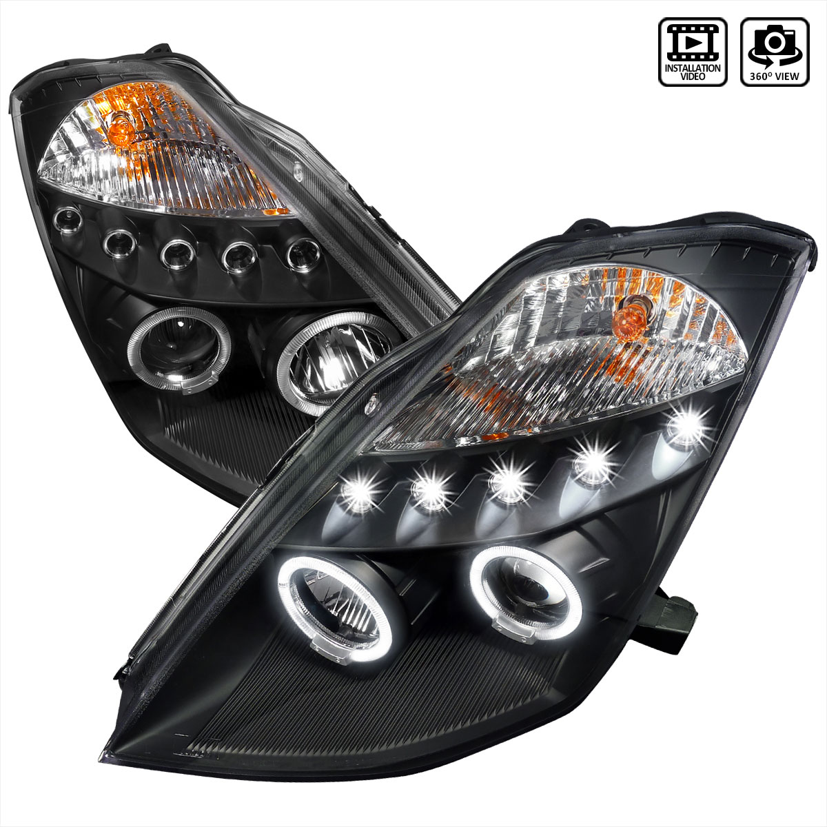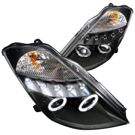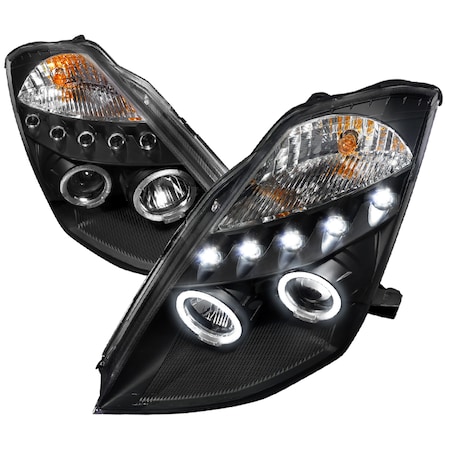 Spec-D Dual Halo Projector Headlights w/ LED Accent Lights (Matte Black Housing/Clear Lens) Nissan 350Z 2003-2005 | 2LHP-350Z03JM-TM