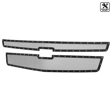 Spec-D Tuning Rivet Style Mesh Black Studded S/S Front Hood Grille Insert 2PCs Compatible with Chevy Suburban 2015-2018