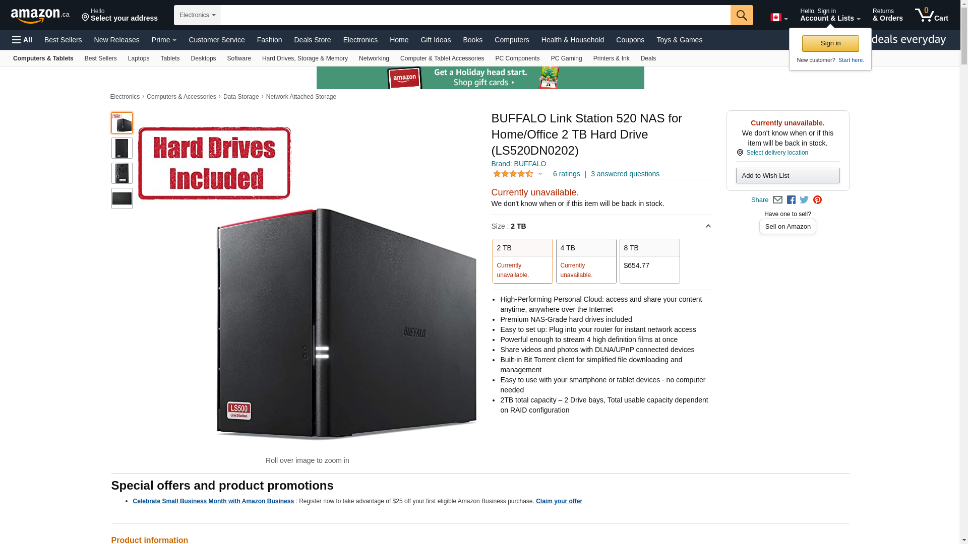 Buffalo LinkStation 520 2TB Private Cloud Storage NAS with Hard Drives Included