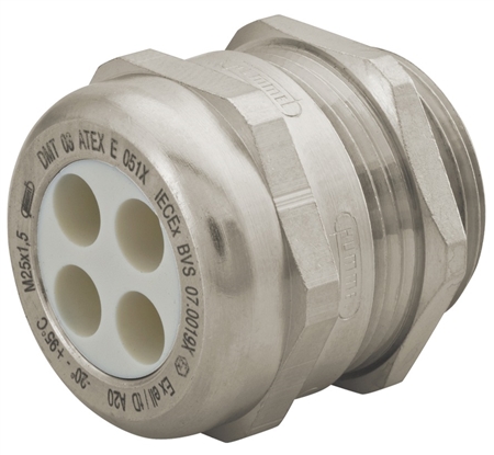 Sealcon CD13A8-MX nickel plated brass cord grip for hazardous locations. PG 13 / 13.5 Thread. 2 hole .17" (4.2 mm) insert. Sold Individually. Hummel 1.687.1307.01