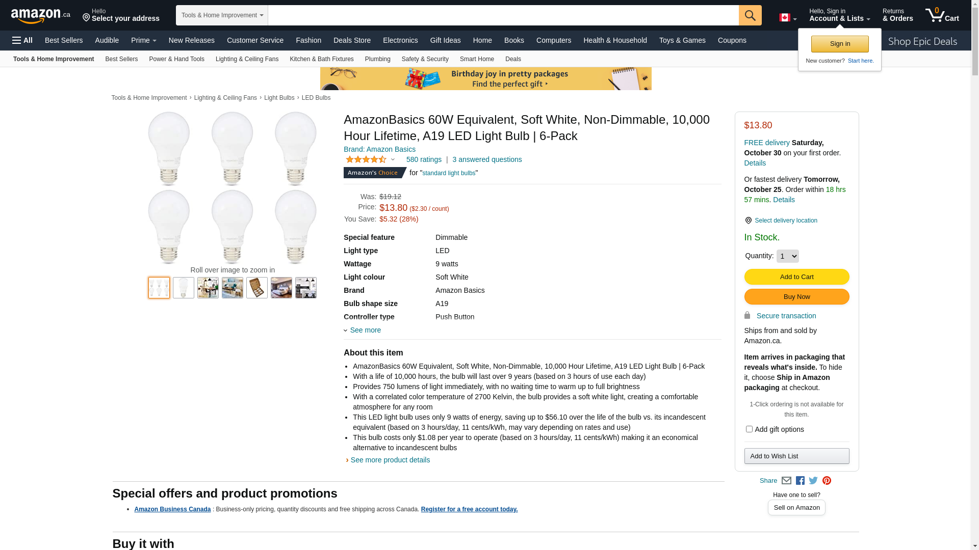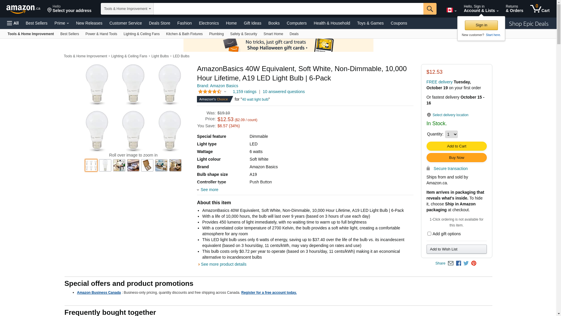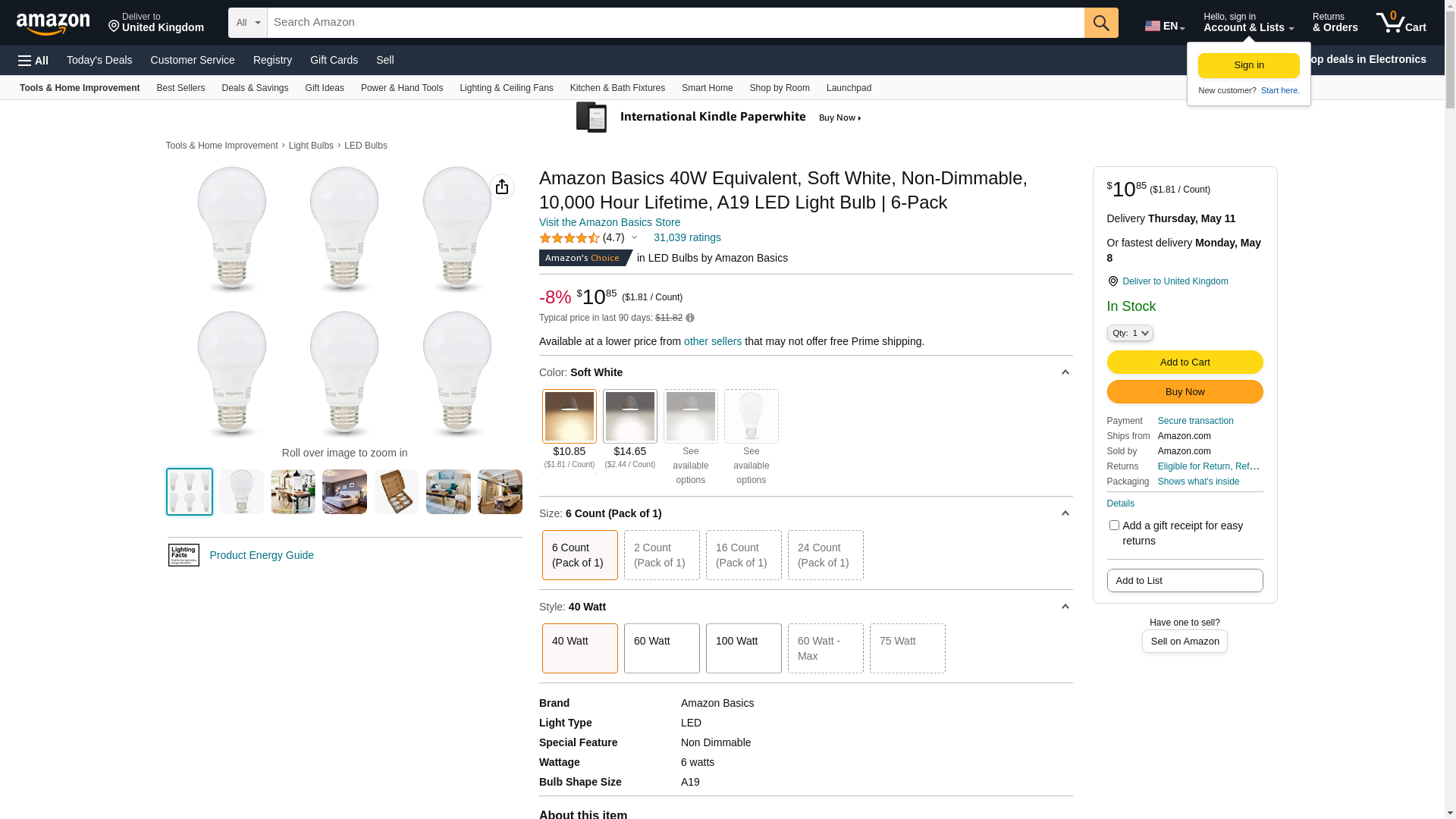 AmazonBasics 60W Equivalent, Soft White, Non-Dimmable, 10,000 Hour Lifetime, A19 LED Light Bulb | 6-Pack
