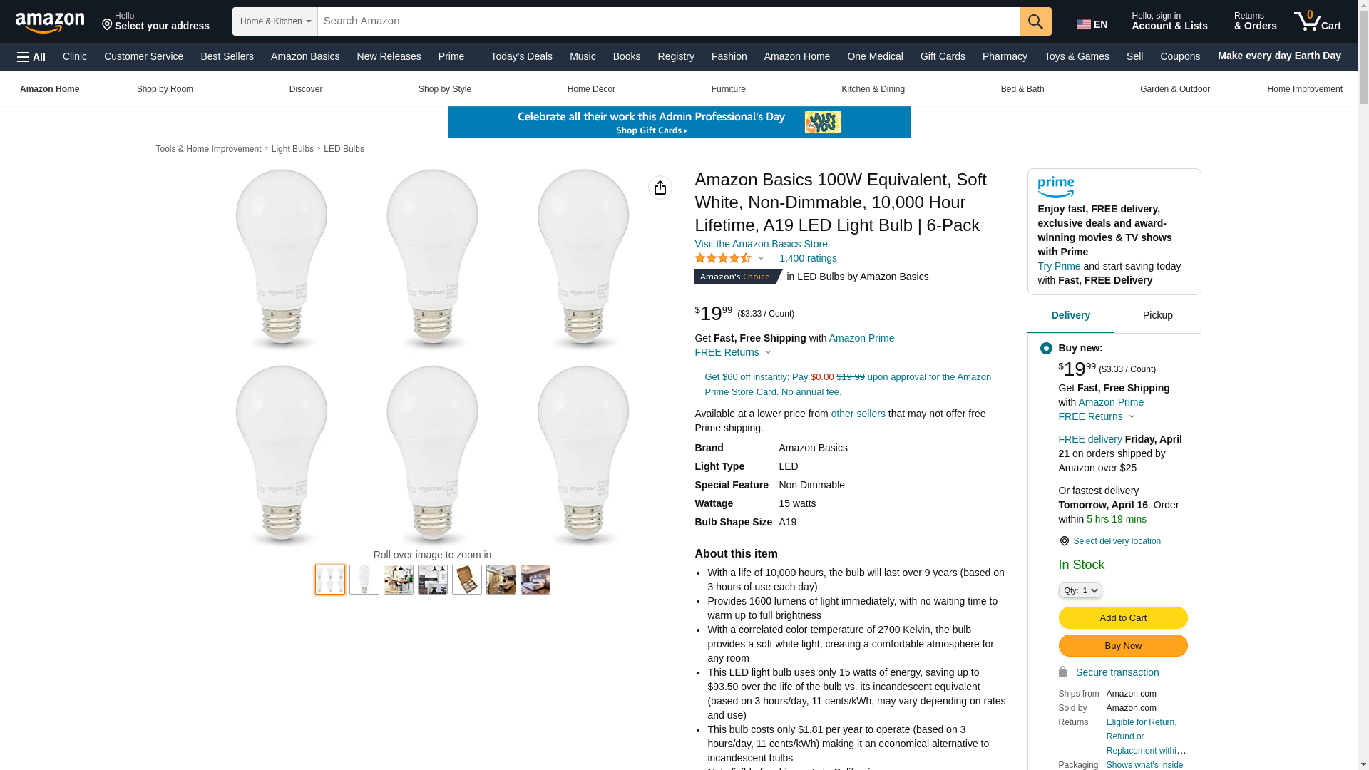 AmazonBasics 100W Equivalent, Soft White, Non-Dimmable, 10,000 Hour Lifetime, A19 LED Light Bulb | 6-Pack: Maxedbuy.com