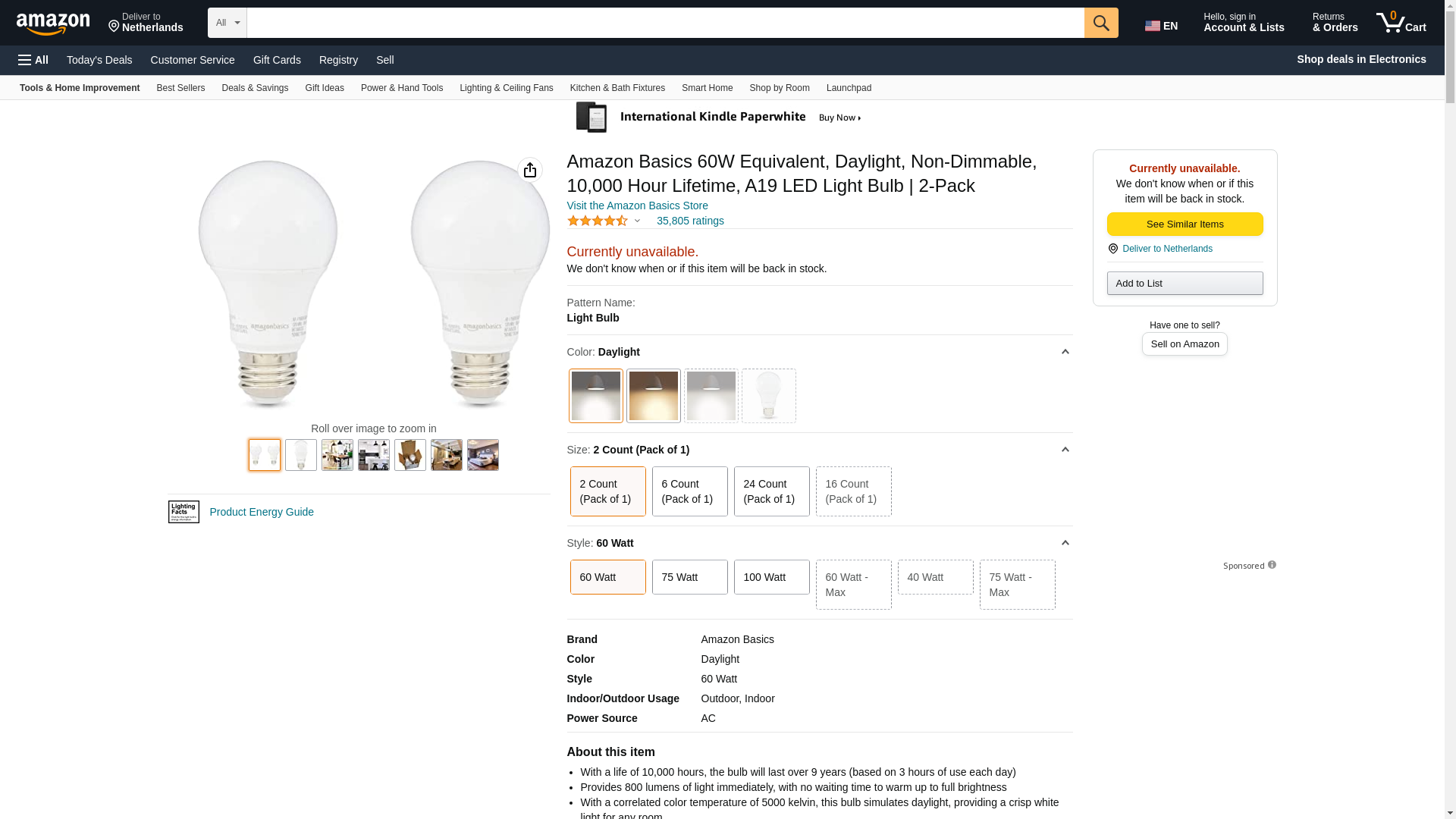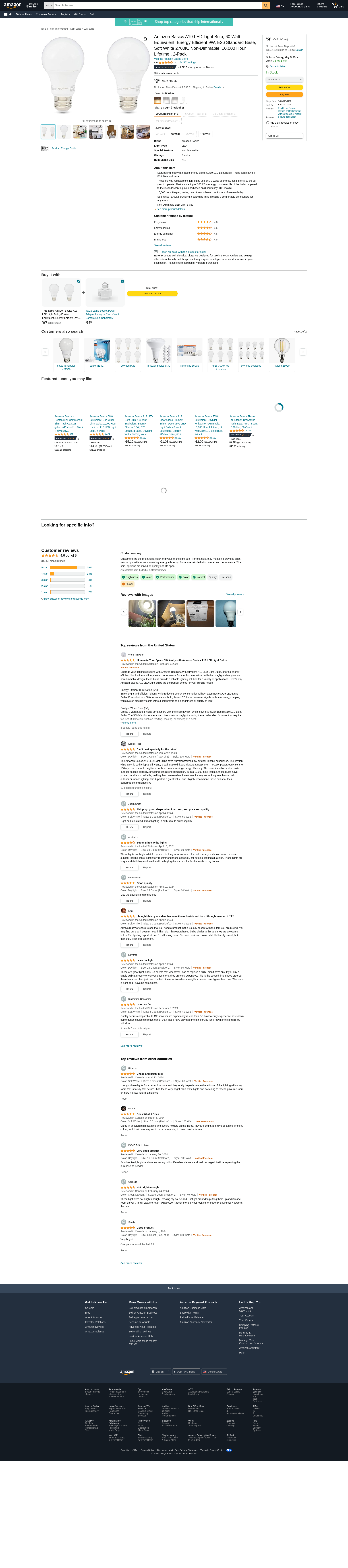 AmazonBasics 60W Equivalent, Soft White, Non-Dimmable, 10,000 Hour Lifetime, A19 LED Light Bulb | 2-Pack