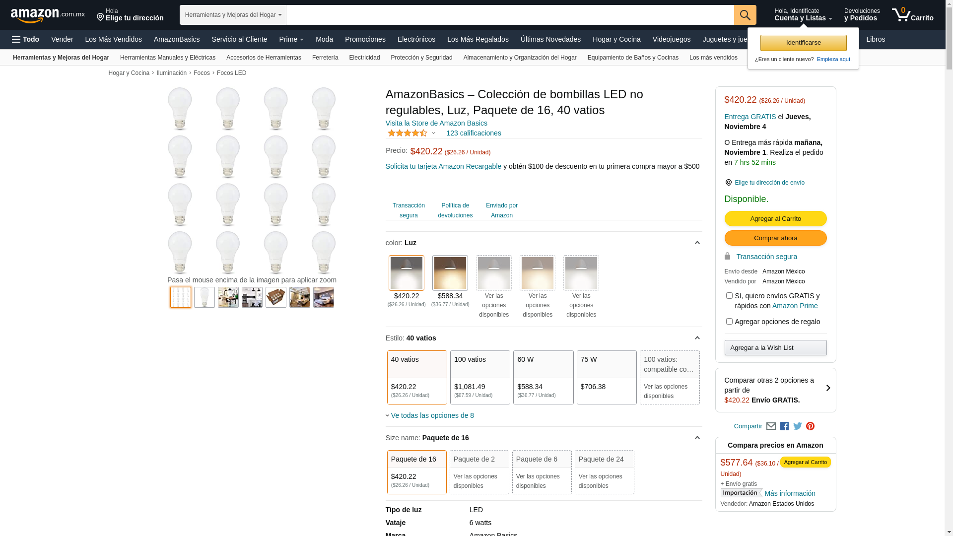 AmazonBasics 40W Equivalent, Soft White, Non-Dimmable, 10,000 Hour Lifetime, A19 LED Light Bulb | 16-Pack