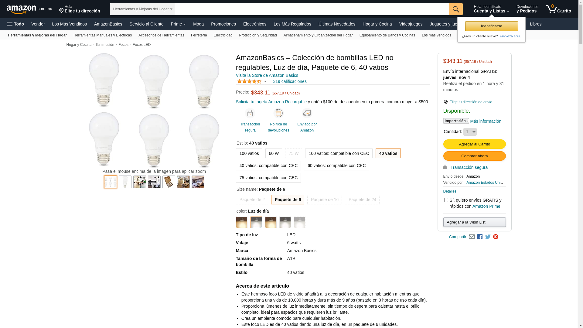 Amazon Basics 40W Equivalent, Daylight, Non-Dimmable, 10,000 Hour Lifetime, A19 LED Light Bulb | 6-Pack