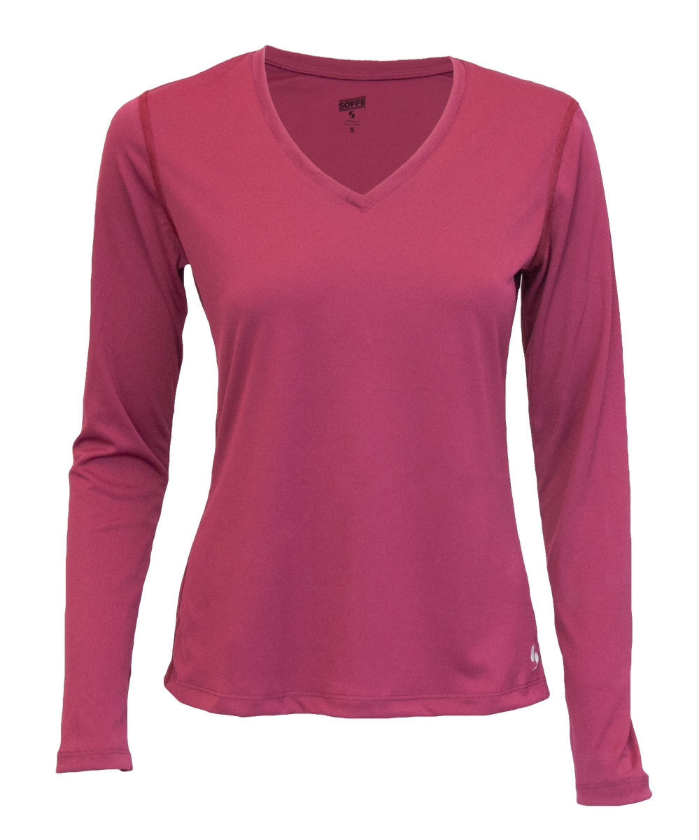 Soffe 1522V513MED V-Neck Long Sleeve Performance Fit Tee Shirt for Junior, Winter Plum - Medium
