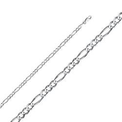 Precious Stars CH-0343-075 7.5 in. 14K White Gold 4 mm Regular Concave 3 Plus 1 Figaro Chain