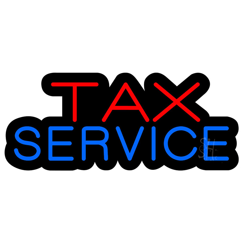 Everything Neon N100-0174BC 6 x 15 in. Tax Service Contoured Black Backing LED Neon Sign - Red & Blue