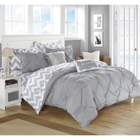 Chic Home 7 Piece Heathville Pinch Pleated Chevron Print REVERSIBLE,Twin X-Long Bed In a Bag Comforter Set Grey with Sheets