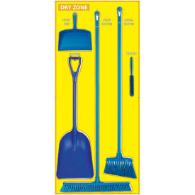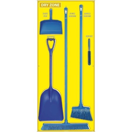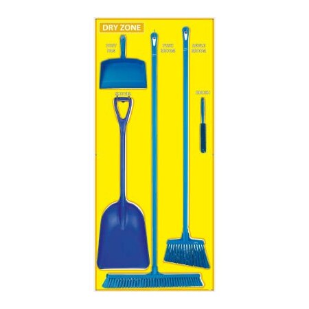 National Marker Dry Zone Shadow Board Combo Kit, Yellow/White, 68 X 30, Alum Composite Panel-SBK137ACP Many manufacturing and food processing facilities are implementing 5S Shadow Boards to help reduce cost and down time by keeping cleaning supplies (and other tools), in a central location, neatly stored, and always accessible. Features: Ideal for basic maintenance and organizational use Includes Shadow Board and hardware for mounting tools Vikan brand tools included: 12' Angle broom, 24' Push Broom with 59' Handle, Dust pan, Bench brush, Single piece shovel with 14' blade. Lightweight, dual-layered aluminum with plastic core Protected by Sign Muscle liquid laminate Temperature range of -60° to 180° Product Details Description Dry Zone Shadow Board Combo Kit Material General Purpose Aluminum Composite Temperature Range -60° to 180 °f Color Family White on Yellow Weights & Dimensions Width 30 in Height 68 in Thickness 0.118 in Weight 18 lbs