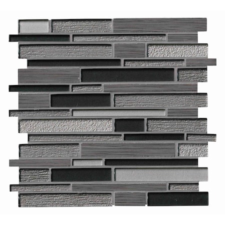 Metro Gris Interlocking Sample Glass Stone Mesh-Mounted Mosaic Tile