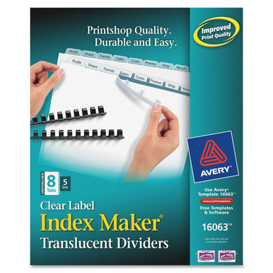 Buy Avery Dennison AVE16063 As low as $40.53 in bulk Out of Stock Avery Index Maker Translucent Divider - Print-on - 8.50" X 11" - 5 / Pack - Clear Divider -