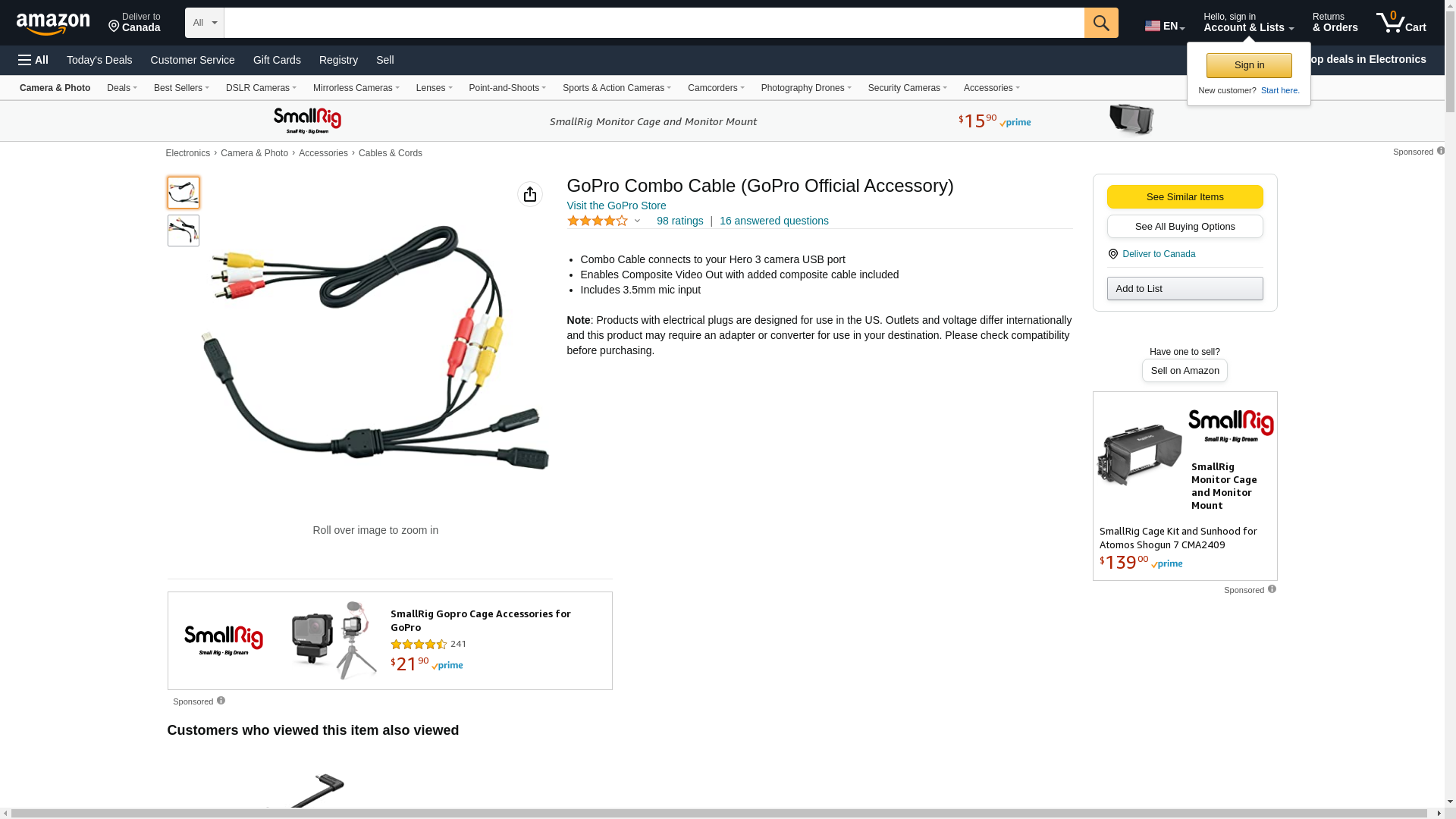 | Feature | Combo Cable connects to your Hero 3 camera USB port |