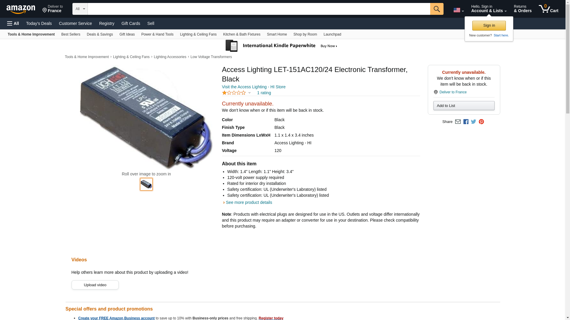 Access Lighting LET-151AC120/24 Electronic Transformer, Black