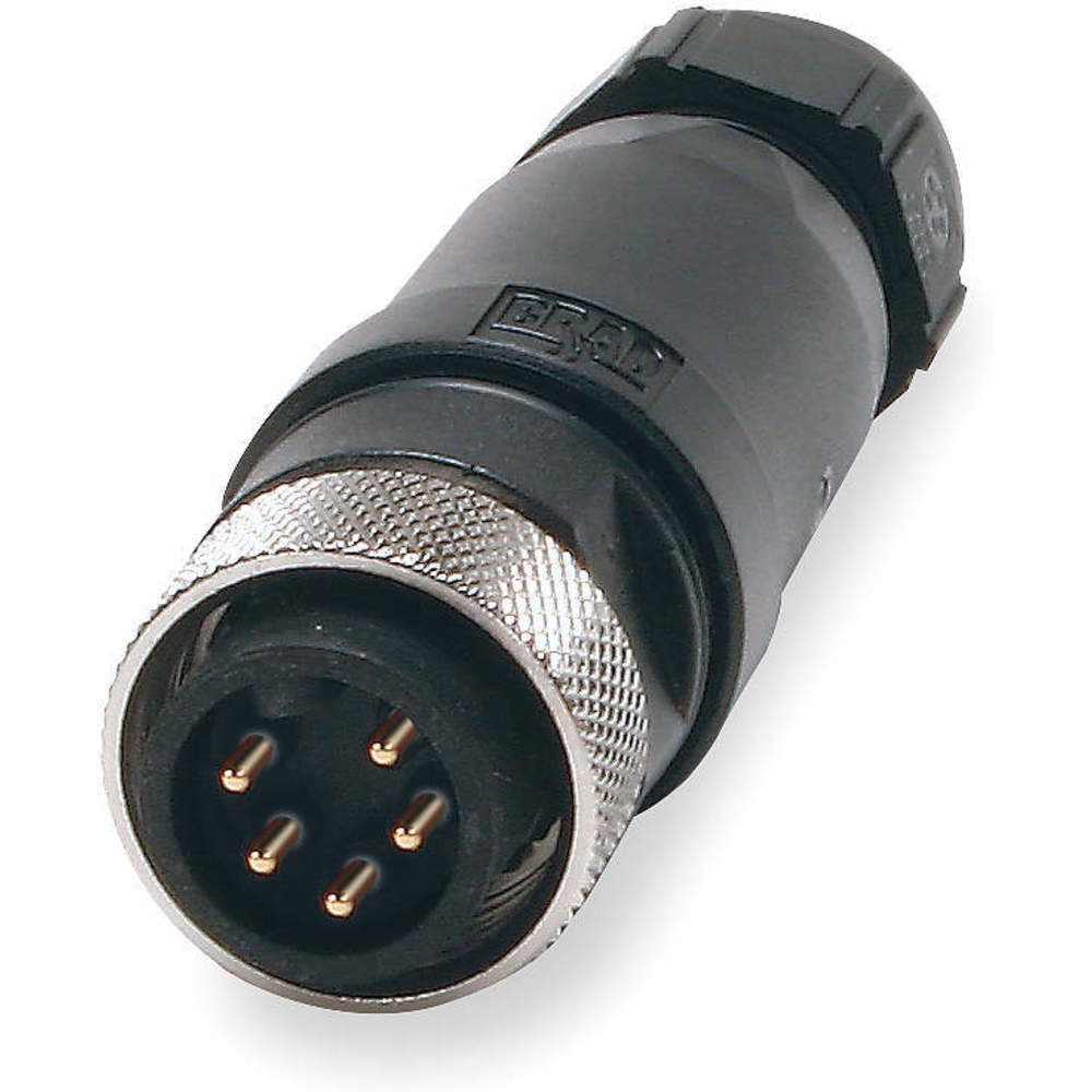 'Internal Thread Connector, Number of Pins 5, Plug or Connector Type Male, Straight Plug End, Max. Voltage 600VAC/DC, Max. Current 8A, Wire Size 24 to 15 AWG, Threads 7/8-16, Face Dia. 0.550 In., Keyway Single, Body Material Polyamide, Color Black, NEMA Rating 6P, Standards UL, IEC'