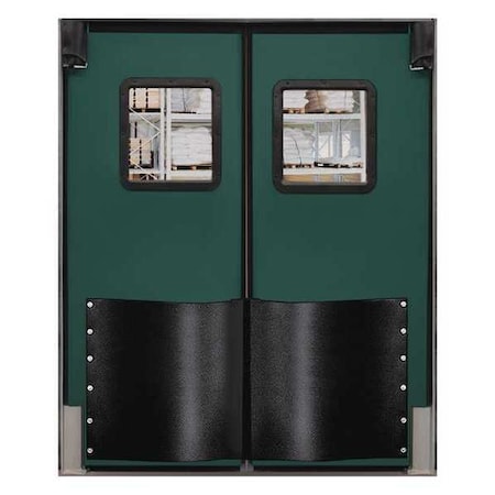 Swinging Door, Door Height 7 ft., Door Width 6 ft., Door Color Forest Green, Swinging Door Material Polyethylene, Textured (Polyethylene Eggshell) Finish, Door Thickness 1-1/2 In., Number of Doors 2, Window Height 16 In., Window Width 16 In., Bumpers Included Yes, Door Seals Included Yes, Opening Height 7 ft., Opening Width 6 ft., Window Color Clear, Window Material Polycarbonate, Left and Right Jamb, Insulation Value 9.86, Standards NSF and USDA Hinges : Left and Right Jamb Window Height : 16 in Finish : Textured (Polyethylene Eggshell) Opening Height : 7 ft Door Color : Forest Green Door Seals Included : Yes Door Material : One Piece Molded Polyethylene Door Height : 7 ft Item : Swinging Door Window Included : Yes Window Color : Clear Insulation Value : 9.86 Door Width : 6 ft Includes : 24 in Spring Bumpers, Mounting Hardware Swinging Door Core Material : Non-CFC Urethane Core Bumpers Included : Yes Standards : NSF and USDA Swinging Door Material : Polyethylene Number of Doors : 2 Door Thickness : 1 1/2 in Window Width : 16 in Opening Width : 6 ft Window Material : Polycarbonate Country of Origin (subject to change) : United States