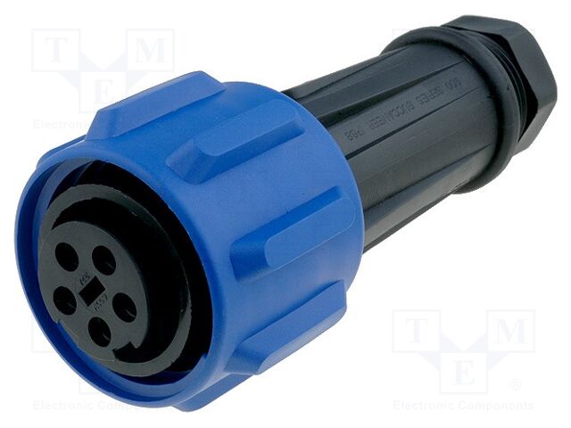 - <b>Price For:</b> Each<b>Order Unit:</b> Each <b>Product Range</b>: Buccaneer 900 Series <b>Gender</b>: Receptacle <b>No. of Contacts</b>: 5 <b>Contact Gender</b>: Socket <b>Contact Termination Type</b>: Screw <b>Connector Mounting</b>: Cable Mount <b>Insert Arrangement</b>: - <b>Connector Body Material</b>: Nylon (Polyamide) Body <b>Connector Type</b>: Circular Industrial <b>Contact Material</b>: Brass <b>Contact Plating</b>: Nickel Plated Contacts