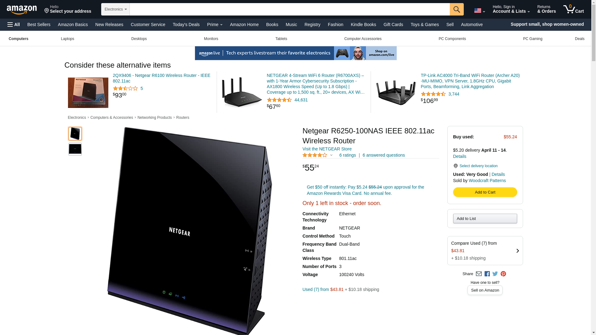 NETGEAR AC1600 Dual Band Wi-Fi Gigabit Router (R6250)