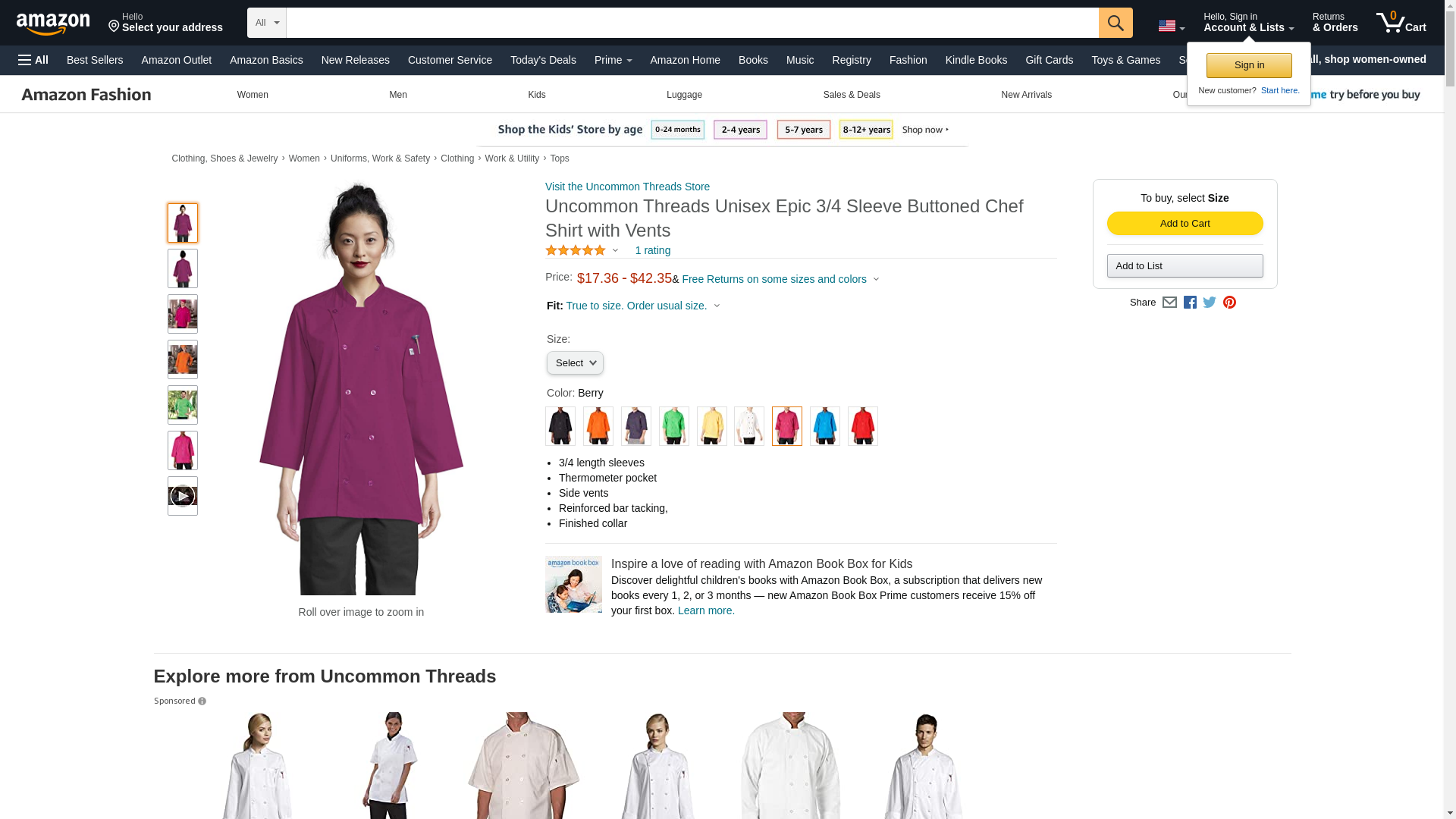 Uncommon Threads womens Epic 3/4 Slv Chef Shirt Work Utility Apron, Berry, XX-Large US