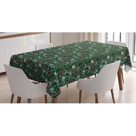 Geek Tablecloth, Colorful Vintage Fashion for Dandy Gentlemen Elements Doodled on Dark Green Backdrop, Rectangular Table Cover for Dining Room Kitchen, 60 X 90 Inches, Multicolor, by Ambesonne