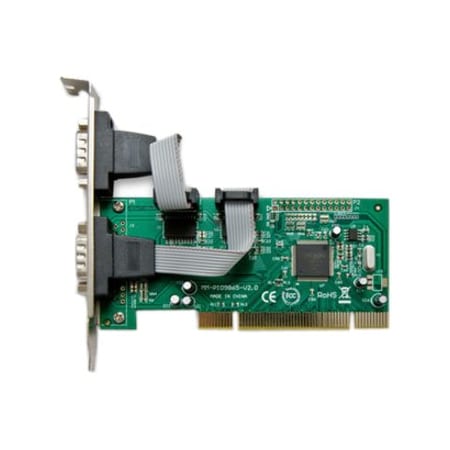 SYBA Multimedia 2-port Serial Adapter - 2 x 9-pin DB-9 RS-232 Serial PCI<br/><br/><strong>Brand Name</strong>: SYBA Multimedia<br/><strong>Form Factor</strong>: Plug-in Card<br/><strong>Host Interface</strong>: PCI<br/><strong>Number of Ports</strong>: 2<br/><strong>Product Type</strong>: Serial Adapter<br/><br/><br/><b>Drive Performance</b><br/>Data Transfer Rate: Up to 8 Mbps<br/><br/><b>General Information</b><br/>Brand Name: SYBA Multimedia<br/>Manufacturer Part Number: SY-PCI15004<br/>Manufacturer: SYBA Multimedia, Inc<br/>Package Contents: 2-port Serial AdapterDriver CDUser Manual<br/>Product Name: 2-port Serial Adapter<br/>Product Type: Serial Adapter<br/><br/><b>Input Devices</b><br/>Data Transfer Rate: Up to 8 Mbps<br/><br/><b>Interfaces/Ports</b><br/>Host Interface: PCI<br/>Ports: 2 x 9-pin DB-9 RS-232 Serial<br/><br/><b>Media & Performance</b><br/>Data Transfer Rate: Up to 8 Mbps<br/><br/><b>Miscellaneous</b><br/>Form Factor: Plug-in Card<br/>Limited Warranty: 3 Year<br/>Package Contents: 2-port Serial AdapterDriver CDUser Manual<br/>Platform Supported: PC<br/><br/><b>Physical Characteristics</b><br/>Form Factor: Plug-in Card<br/><br/><b>