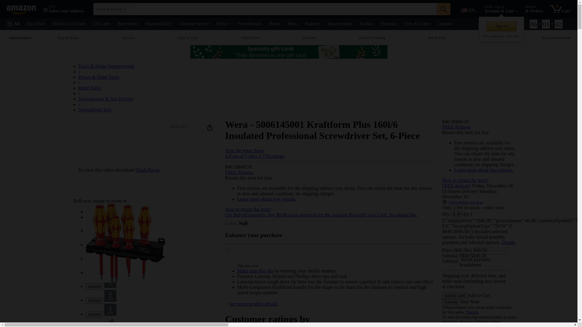 Wera Assorted Insulated Screwdriver Set, Multicomponent, Number of Pieces: 6 Chrome 05006145001 - 1 Each
