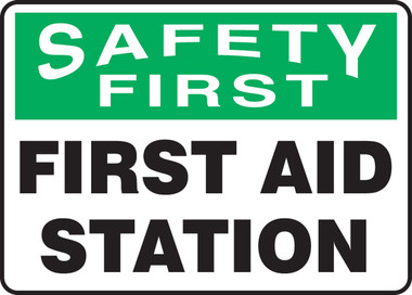 Order MFSD972XV by Accuform Dura-Vinyl Sign "Safety First - First Aid Station" - US Mega Store