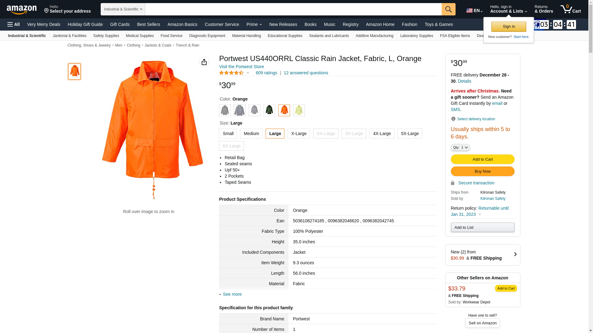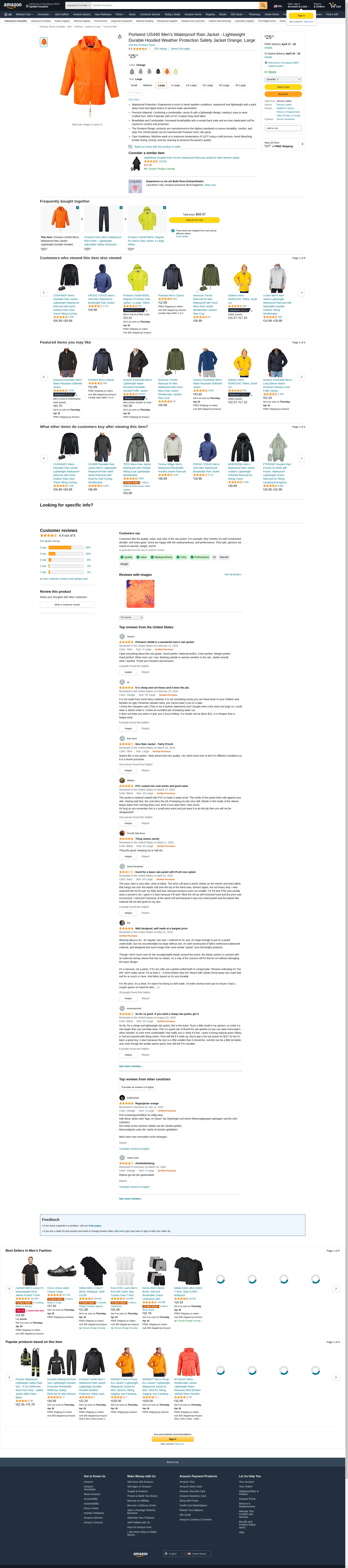 Order US440ORRL by Portwest Classic Rain Jacket, Reg Fit, Orange, L - US Mega Store