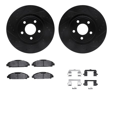 Dynamic Friction Company Front Brake Rotors Drilled and Slotted Black with 5000 Advanced Brake Pads includes Hardware - 8512-54084