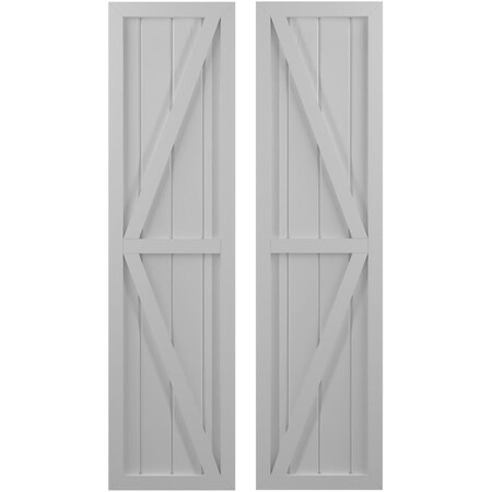 Americraft 4-Board Exterior Real Wood Two Equal Panel Framed Board-n-Batten Shutters w/ Double Z-Bar