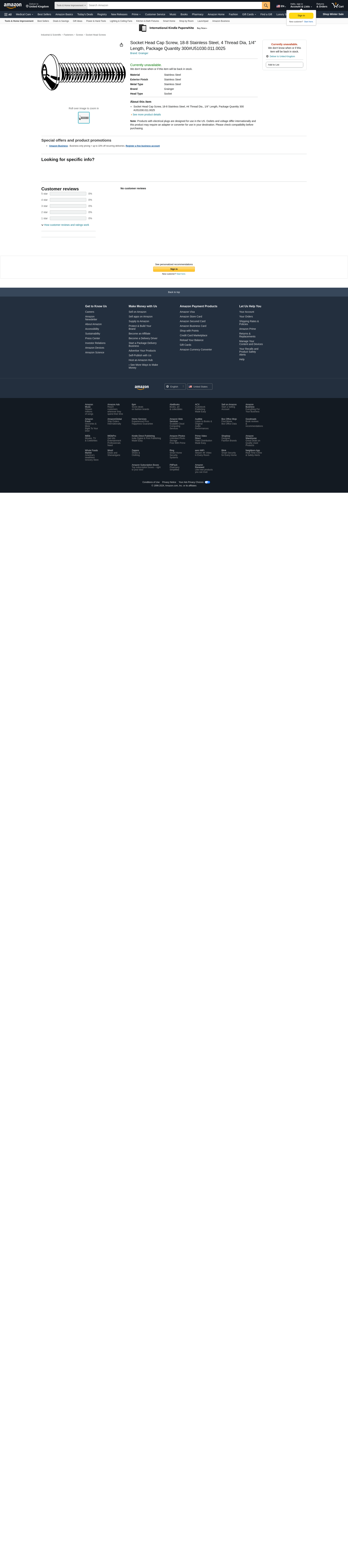 | Feature | Socket Head Cap Screw, 18-8 Stainless Steel, #4 Thread Dia., 1/4" Length, Package Quantity 300 #U51030.011.0025 |