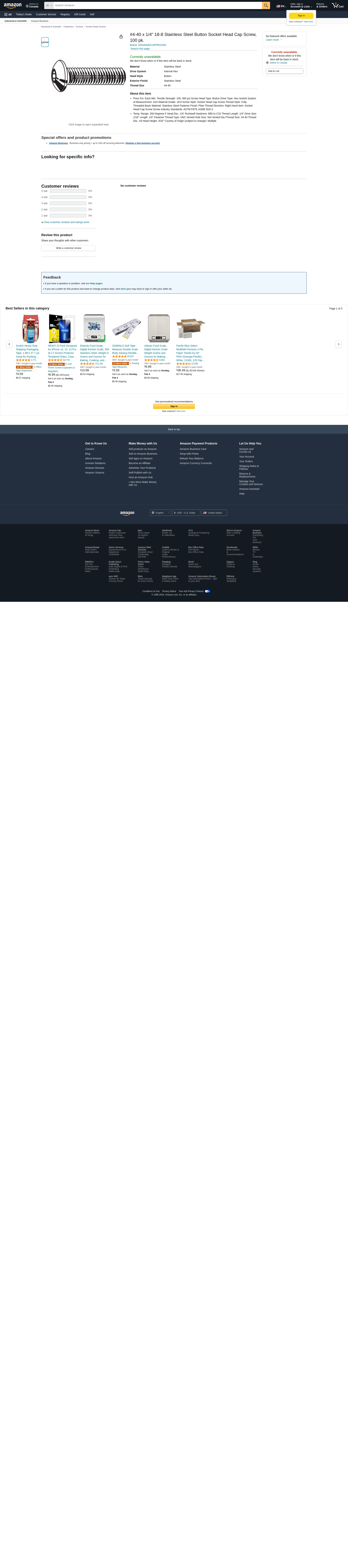 - Price For: Each Min. Tensile Strength: 100, 000 psi Screw Head Type: Button Drive Type: Hex Socket System of Measurement: Inch Material Grade: 18-8 Screw Style: Socket Head Cap Screw Thread Style: Fully Threaded Basic Material: Stainless Steel Fastener Finish: Plain Thread Direction: Right Hand Item: Socket Head Cap Screw Screw Industry Standards: ASTM F879, ASME B18.3