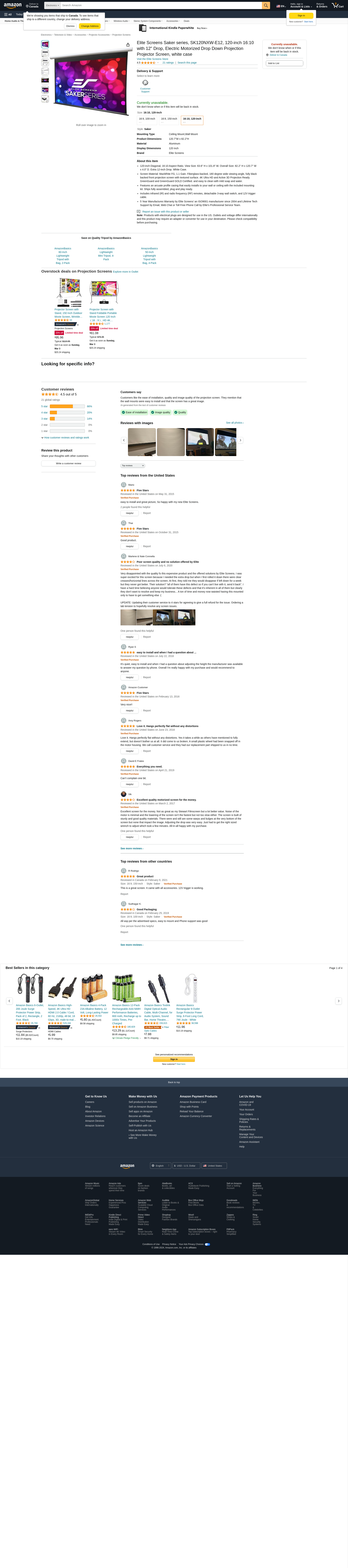 Elite Screens Saker series, SK135XHW-E18, 135-inch 16:9 with 18" Drop, Electric Motorized Drop Down Projection Projector Screen, white case