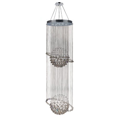 Features: -Chandelier. -Number of lights: 12. -Premier crystal glass material. -Surface mount. -UL listed. -Dressed with 30pct premier lead crystal. Product Type: -Crystal chandelier. Finish: -Chrome. Material: -Metal/Glass. Number of Lights: -12. Wattage: -35 Watts. Bulb Type: -Halogen. Suitable for High Use: -Yes. Dimensions: Overall Product Weight: -90 lbs. Fixture Height - Top to Bottom: -96". Fixture Width - Side to Side: -28". Fixture Depth - Front to Back: -28".
