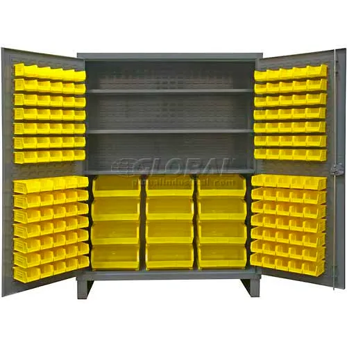 Durham Extra Heavy Duty Welded 12 Gauge Steel Cabinet with 156 Bins, HDC60-156-3S95, 1625 lbs Shelf Capacity, 24" Length x 60" Width x 78" Height, 3 Shelves