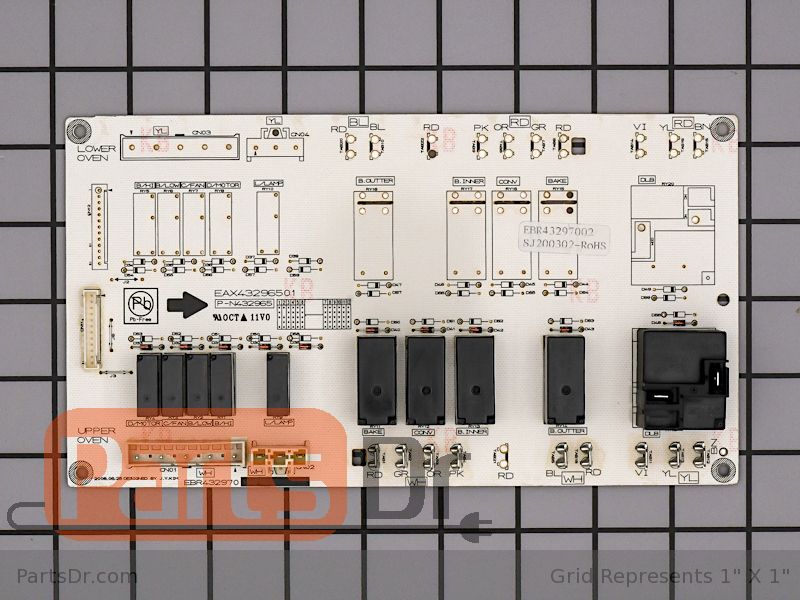Genuine Original Equipment Manufacturer (OEM) parts! This relay control board (part number EBR43297002) is for wall ovens. Relay control board EBR43297002 receives signals from the main oven control board. The relay control board operates relays to regulate the oven elements. Disconnect electrical power to the oven before installing this part. Wear work gloves to protect your hands.