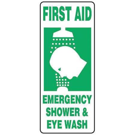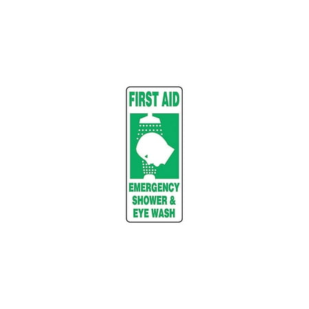 Accuform MFSD996VP Plastic Safety Sign, First AID Emergency Shower & Eye WASH" with Graphic, 17" Length x 7" Width x 0.055" Thickness, Green on White