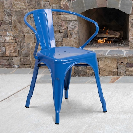 Flash Furniture Roy Commercial Grade 4 Pack Blue Metal Indoor-Outdoor Chair with Arms