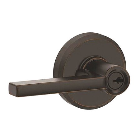 F51ALAT716GSN Aged Bronze F Series Latitude With Greyson Rose Entry (Keyed) Function - Locked by Key & Rotating Cylinder from Outside; Unlocked by Key on Outside or when opened from inside ANSI A156.2 Grade 2 Square, Round, or Drive-In Latch 2 3/8" or 2 3/4" Backset Round & Square Corner Full Lip Strikes 1 3/8" - 1 3/4" Door Range Schlage C Keyway 5 Pin Cylinder Lifetime Mechanical & Finish Warranty Reversible Handing 2 1/8" Crossbore