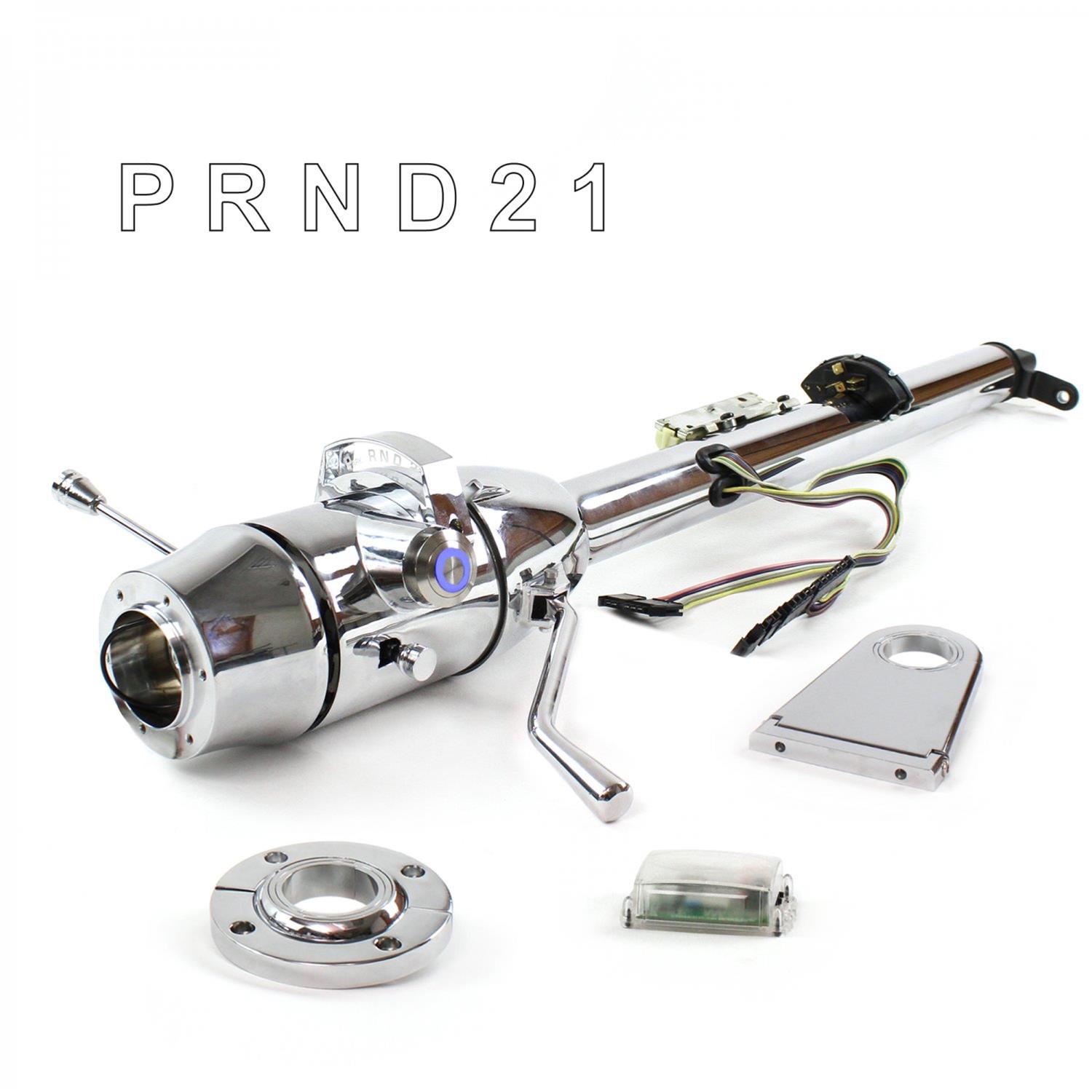 Suspension Pros steering columns are machined to deliver the highest quality steering performance in a compact column. Each steering column offers reinforced column tubing, 3 position tilt, billet steering column dress up kit, steering wheel horn button, hazard button, and machined splined steering wheel input. All tilt Steering columns are based on the tried and proved GM tilt column and have been engineered to work flawlessly right out of the box. Columns are available in many styles to include floor Shift, Column Shift, Black, Chrome and Keyed. We also have Non-Tilt Black Roadster column and a Non-tilt Stainless Roadster column. Keyed columns have the option available for the One Touch Push Button Start system as well as can be paired with RFID Hands Free Security to eliminate the need for keys. Those systems are available for dash mounted keyed setups as well. Stay ahead of the pack with Suspension Pros Suspension. Shift Style :: Column Shift Shift Pattern :: 3 Speed Auto Column Finish :: Chrome Tilt :: YES Keyed :: YES Tube Diameter :: 2 Inch Steering Input :: 3/4-36 Output Shaft :: 1DD O.D. 3/4DD I.D. Column Length :: 33" Floor Mount :: Premium Swivel Column Drop :: 5.5" Steering Wheel Adapter :: 6 Hole Push Button Start :: One Touch Push Button Start Push Button Illumination :: BLUE Hands Free Security :: Not Included