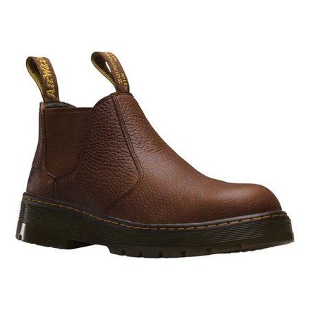 The Dr. Martens Rivet ST boot keeps things easy for your feet, but tough on protection with its durable leather construction and steel safety toe design. Pitstop leather upper made of a full grain leather. Easy slip-on Chelsea boot with side gore panels for easy flexibility. Classic front and rear pull tabs for easy entry. Cement construction where the upper and outsole are cemented together, allowing for better flexibility and durability. Textile lining for added breathability. Cushioned textile insole provides excellent underfoot comfort and support. Air-cushioned PVC rubber outsole is hard-wearing, with good abrasion and slip resistance. Steel toe meets ASTM F2413-11 I/75 C/75, EH standards. Imported. Measurements: Weight: 1 lb 12 oz Circumference: 10 1?2 in Shaft: 4 3?4 in Product measurements were taken using size UK 10 (US Men's 11), width D - Medium. Please note that measurements may vary by size.