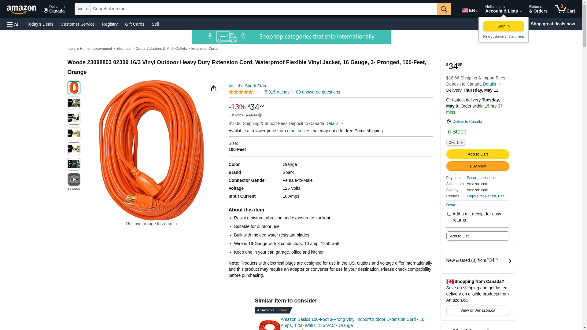 Southwire 2309SW8803 16/3 Vinyl Outdoor Extension Cord, Weather Resistant Flexible Vinyl Jacket, 3- Pronged, 100-Foot Extension Cord, 10 AMP, 1250 Watts, Orange
