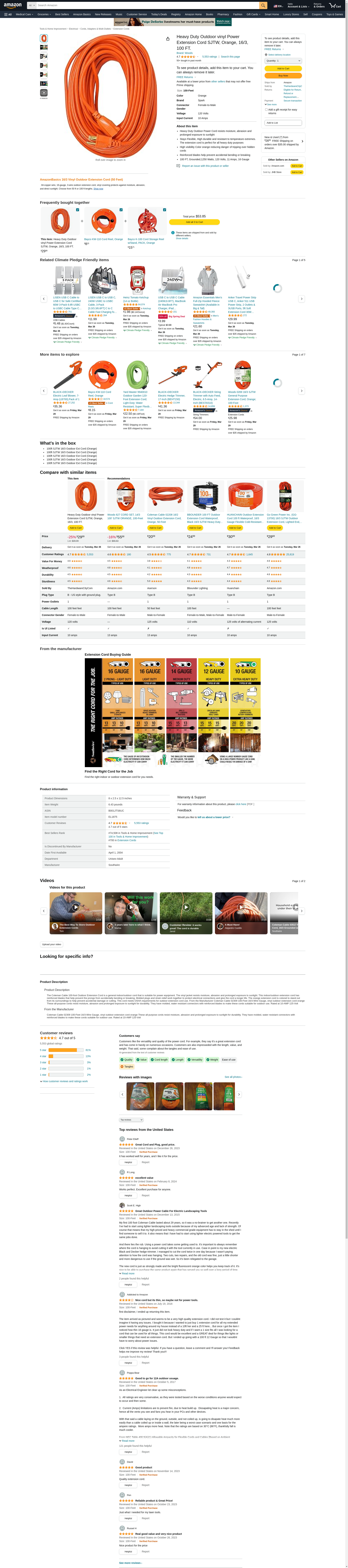 COLEMAN CABLE 647214 02309 16/3 Vinyl Outdoor Extension Cord, Orange, 100-Feet