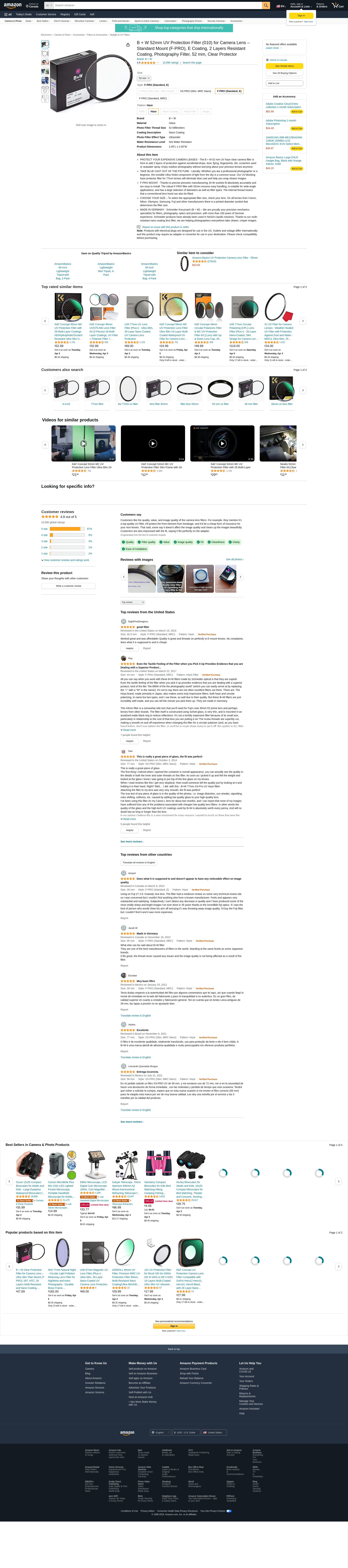 - PROTECT YOUR EXPENSIVE CAMERA LENSES - The B + W 52 mm UV haze clear camera filter is here to add 2 layers of protection against accidental drops, dust, flying, fingerprints, dirt, scratches sand or seawater spray. Enjoy outdoor photography without worrying about your precious lenses anymore.
