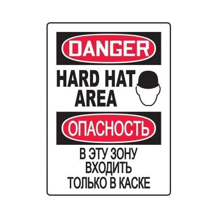 ENGLISH/RUSSIAN DANGER HARD HAT AREA (W/GRAPHIC) Dura Aluma-Lite Sign