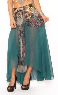 Western Fashion 3033SK-TEL-SM Skirt with Swags & Trader Beads, Teal - Small & Medium
