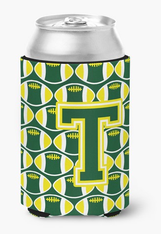 Carolines Treasures CJ1075-TCC Letter T Football Green & Yellow Can or Bottle Hugger