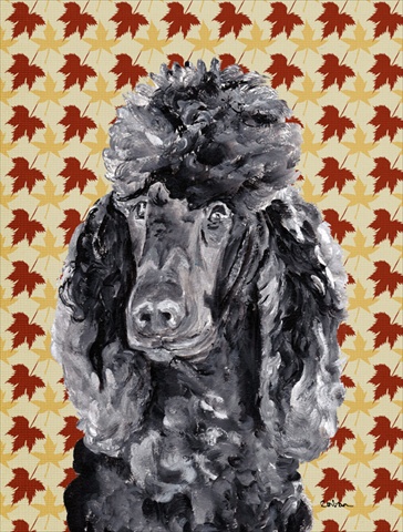 Black Standard Poodle Fall Leaves Flag Canvas House Size